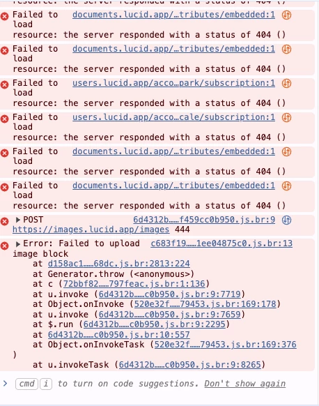 I have not been able to replicate this experience in your recent documents. Can you send a screenshot of the associated Javascript Console output when you attempt to pull up the insert image option? You can open your Javascript Console by pressing Ctrl + Shift + J (if your computer is a Windows / Linux) OR Cmd + Opt + J (if your computer is a Mac).