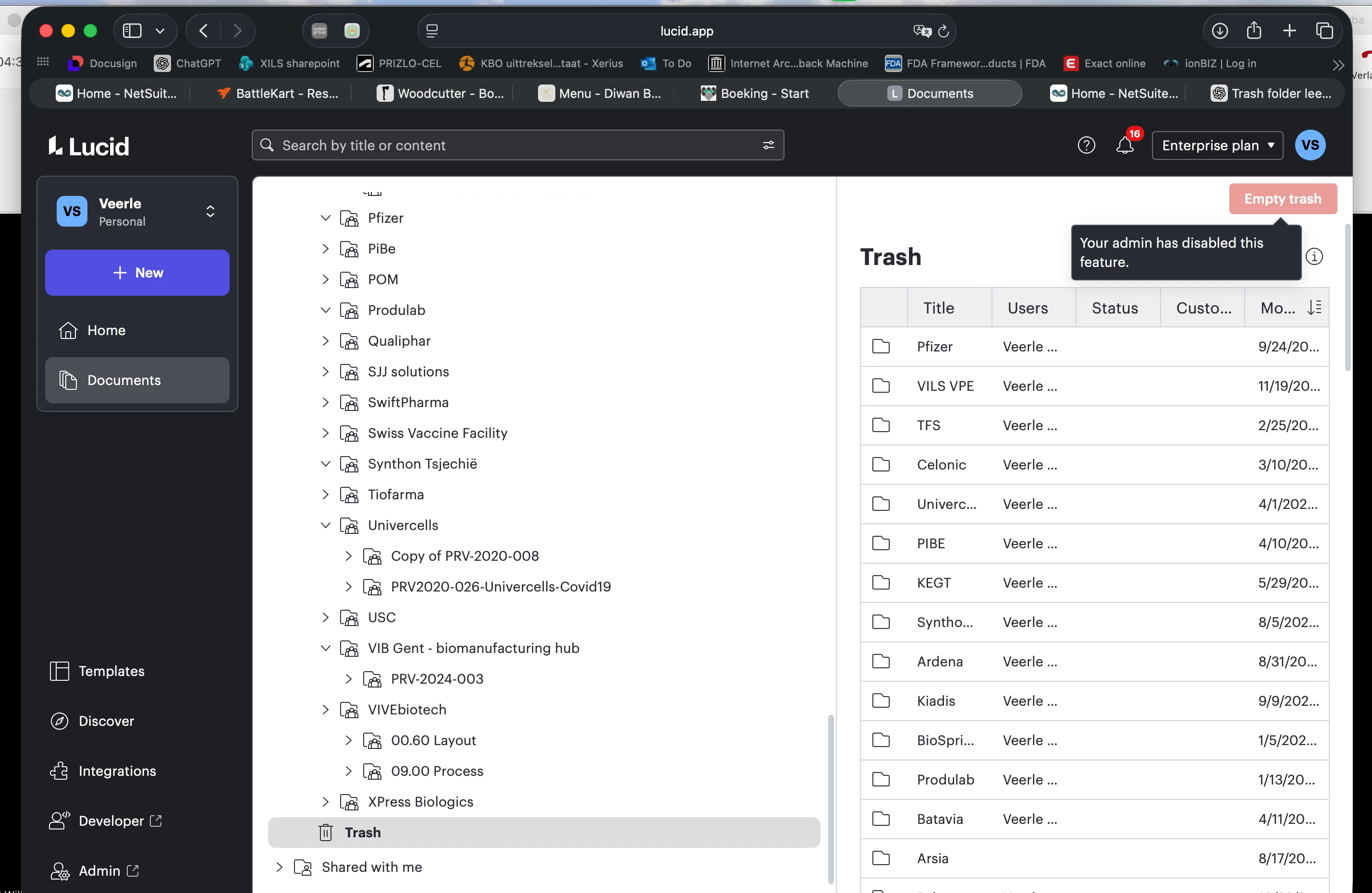 when I try to empty the trash folder in the team folder directory, I get the message that I do not have the rights to do that. Currently I hold the account owner role of the VILS Enterprise account.