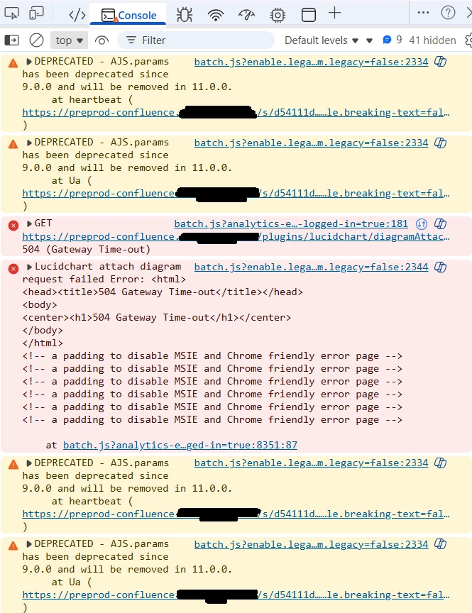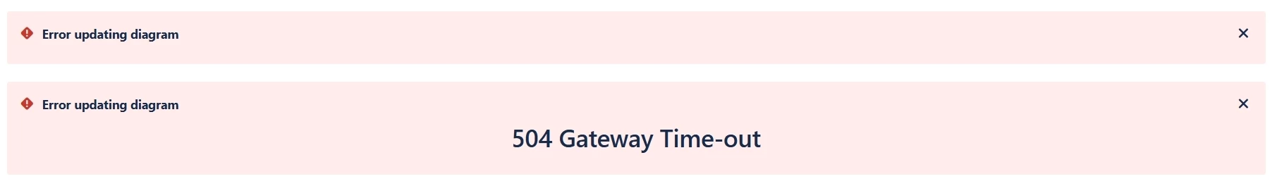 We are having trouble with adding new diagrams on Confluence pages with Lucidchart macro. However our other diagrams are ok on other pages, still visible. When trying to add a new diagram, afer selecting the diagram, we have a loading page and then an error 504. Here are the screenshots :