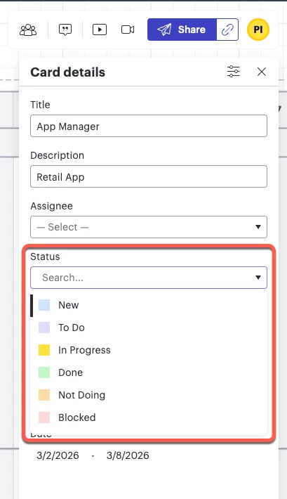 There are some default status options on a Lucid Card. Where do you go to edit/change then?