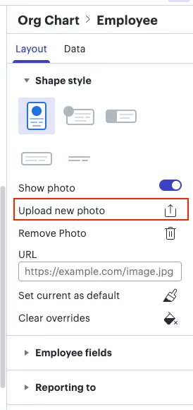 - You can add an image URL to an individual employee shape. You can also find the steps in the Add photos section of our Create an Org Chart Help Center.