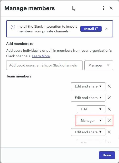 I have created a team in Lucid. I have added team members to the team and have assigned one of them the manager role.