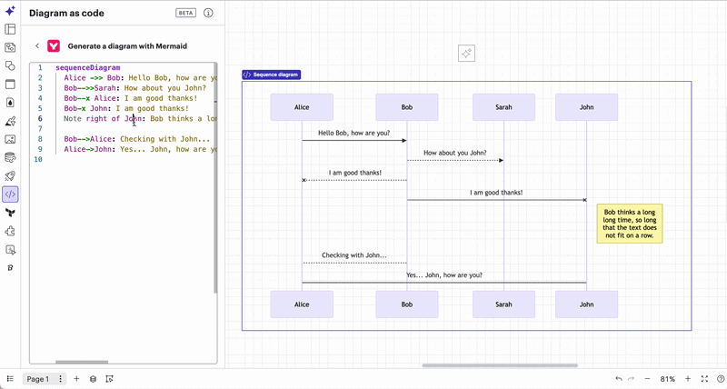 Instead of manually updating your diagram, your diagrams will automatically update as you write your mermaid code. Now it’s easier than ever to build and iterate on complex diagrams without breaking your concentration.