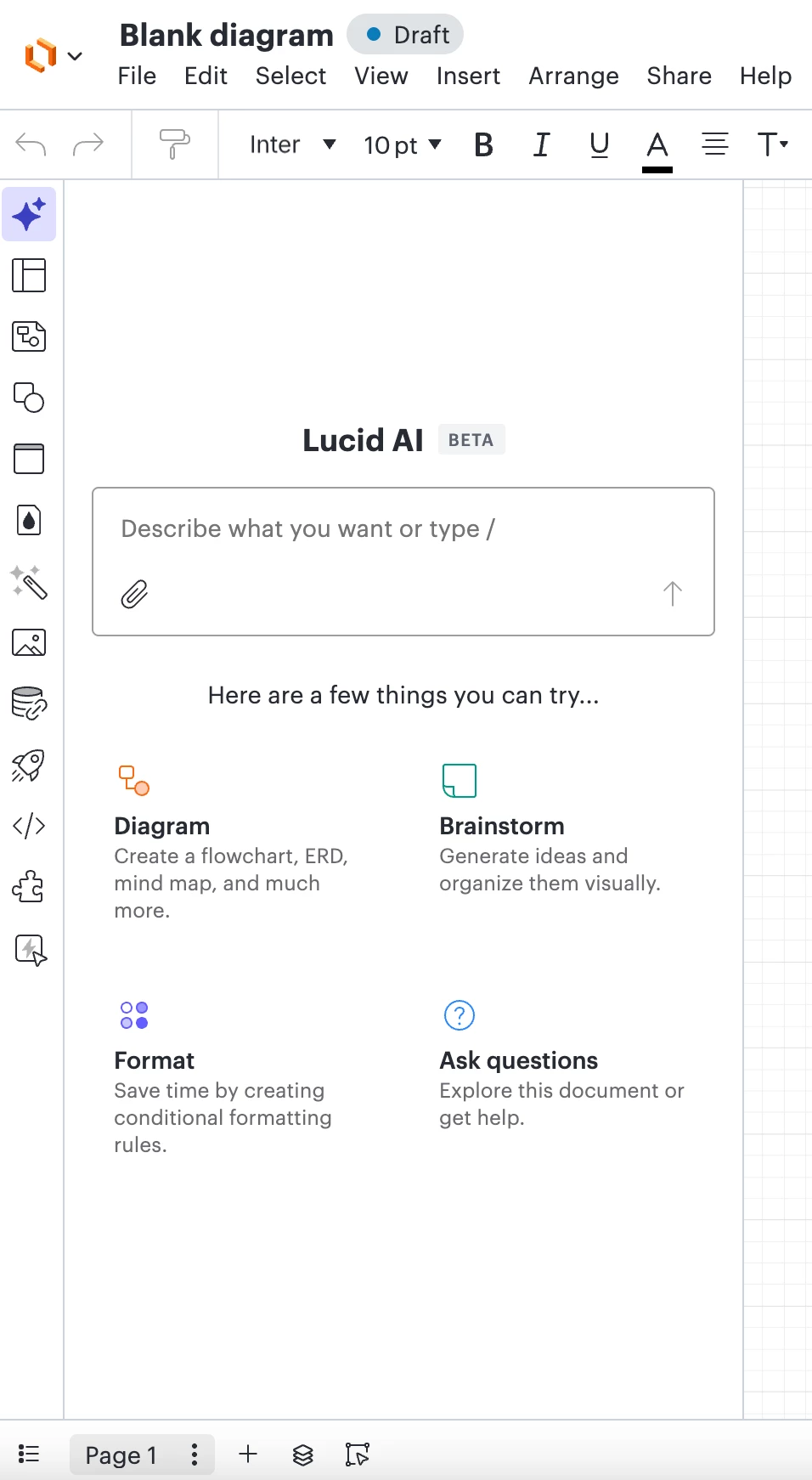 From within the Lucid AI chat, type in your prompt and start creating! Here are a few things that Lucid AI can help you with: