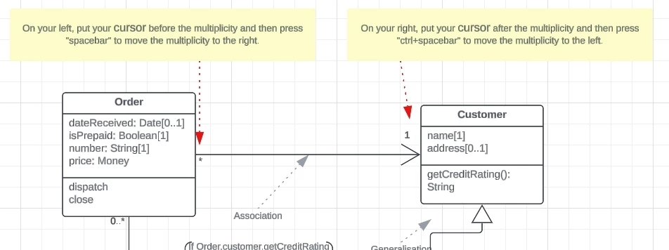 Is it possible to realign or position where multiplicity labels appear in class diagrams? When I have a horizontal association and Add Multiplicities, they sometimes overlap the shape (UML class) border and are not so readable. See screenshot.