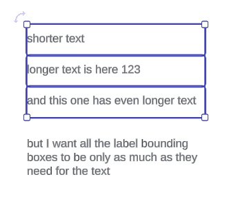 I want the bounding box of a label to only be as big as it needs to be to accommodate the text in it. In the screenshot below, see that I duplicated 3 labels and change their text. All of them are the same width since, but I want them each to be “shrink to fit” depending on their text length.