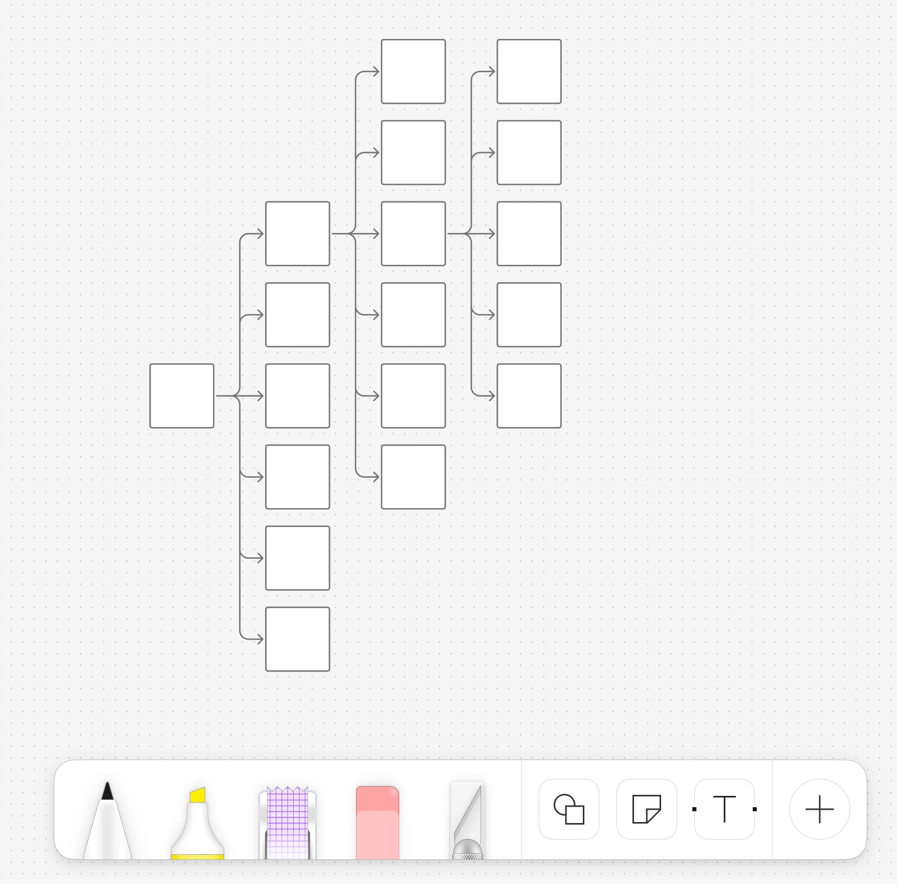Mural and Miro don’t have this issue. Both apps will keep adding another object/shape in the same alignment as the first three.