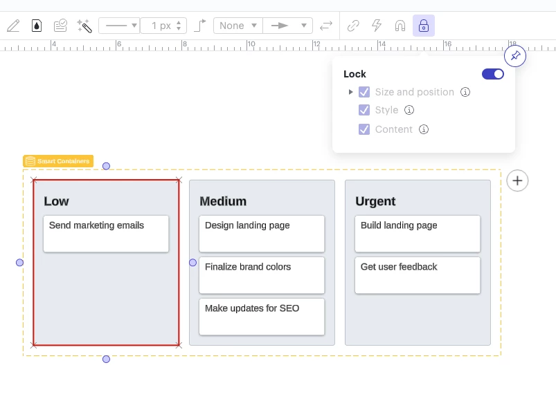 I can lock the entire set but then users cannot move the content/shapes between the smart containers at all and I am able to lock the individual smart containers in place so users can move the content/shapes between the boxes - but neither of these solve my problem……….