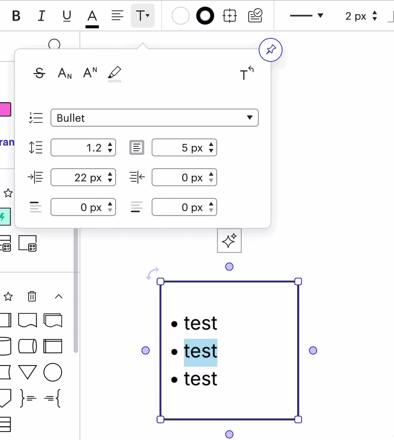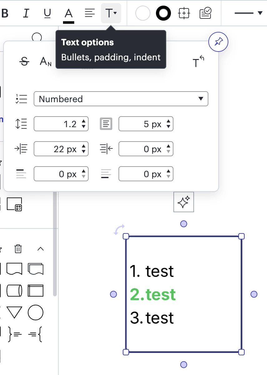 Currently any list numbering or bullet point in a text box in Lucidchart is formatted the same as the previous line. The numbering or bullet points cannot be selected to allow reformatting i.e. bold, different colour. Adding more text formatting options will help with the ability to recreate and edit process documentation for publishing to Process Accelerator.