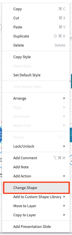For example I have a pentagon shape that is blue with the text ABC. I want to change the shape from Pentagon to a Square but keep the text and fomatting.