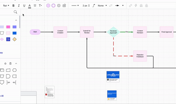 There are a few different ways to select multiple objects on Lucidchart documents and Lucidspark boards: