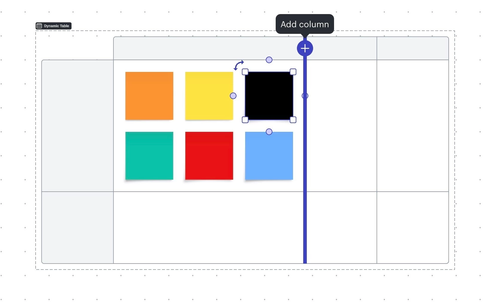 What if you could differentiate between creating a new column and moving sticky notes down the row? The dynamic table has the ability to do both. Maybe the assisted layout could as well but in a different way…