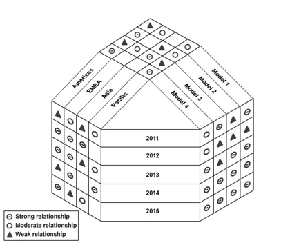 I'd like to see a shape that can be used to easily produce 3-dimensional matrices (also known as an Y-matrix or Y-shaped matrix), that can visualize data relationships between 3 different, but related properties. Below is an example of such a matrix