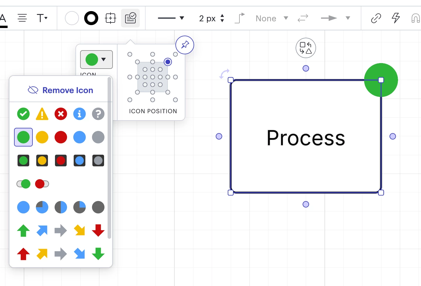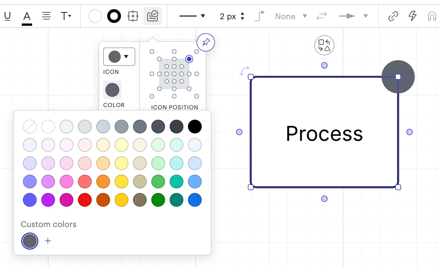 I would like to change the color of an icon, in the same way that you can change the color of a shape or a note.