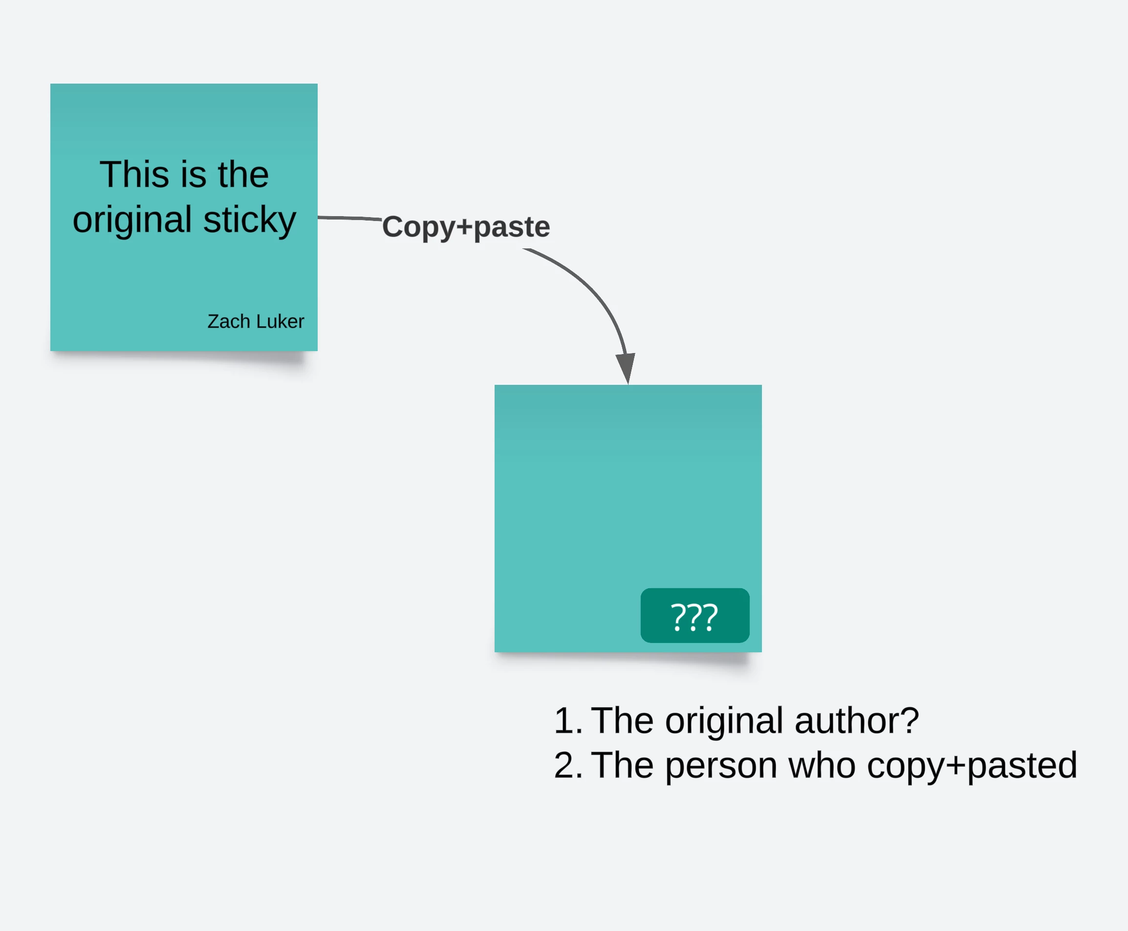 When you copy and paste someone else’s sticky note, lets say its my sticky so it says Zach Luker in the in the bottom right, should the new sticky note have... 1) the original author (Zach Luker) OR 2) The person who copy+pasted’s name