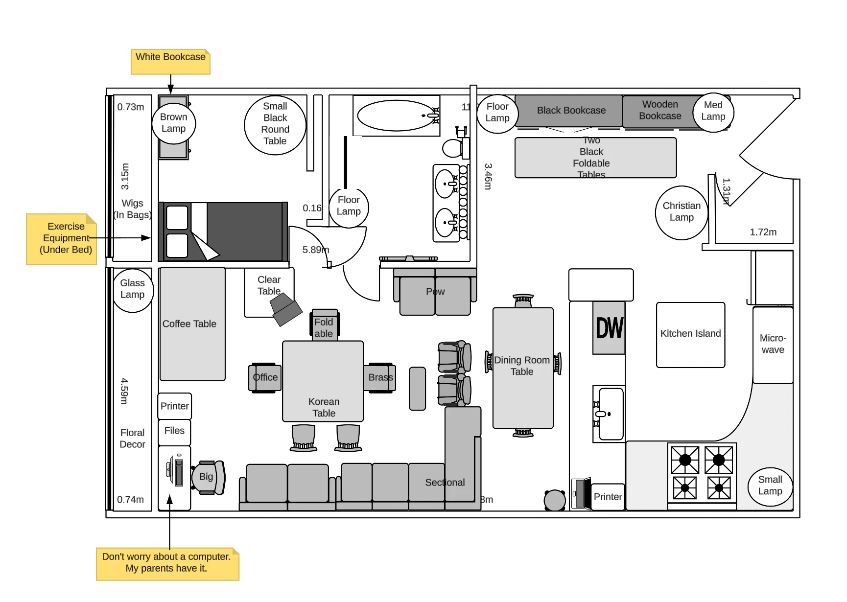 I created this when I moved into a 1BR apartment so I knew where I wanted everything to go. I created this to highlight how I personally use Lucid, since I cannot share the diagrams I’ve made in my role and industry.
