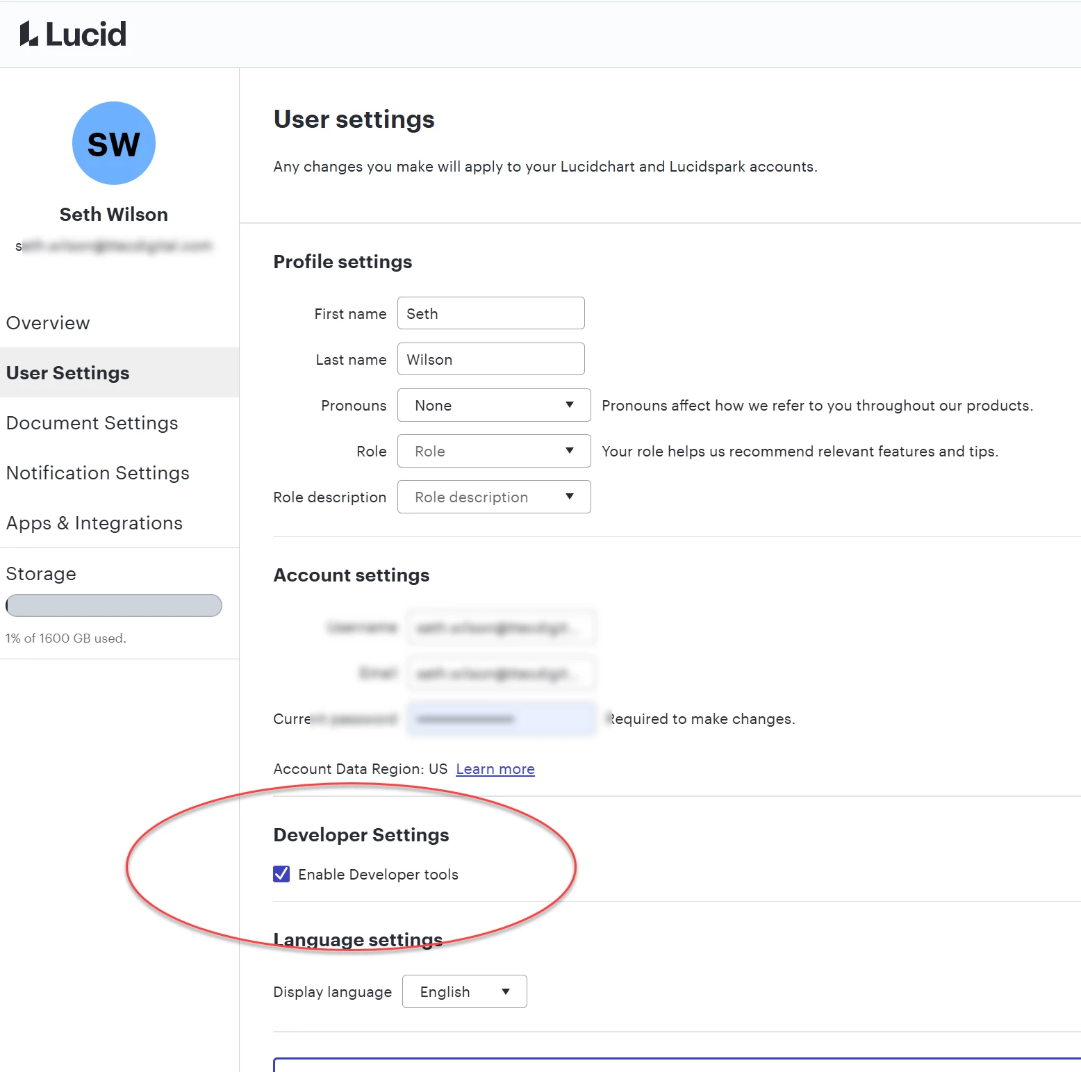 In Lucid, OAuth clients and scopes are only available when developer tools are unlocked on a Team or Enterprise account, and then enabled for your specific user in User Settings → Developer Settings.