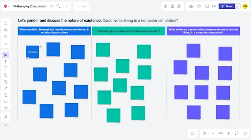 Instructors use Lucidspark boards to both structure, ground and deepen their class discussions. They start the discussion by sending the collaborative board to the class.
