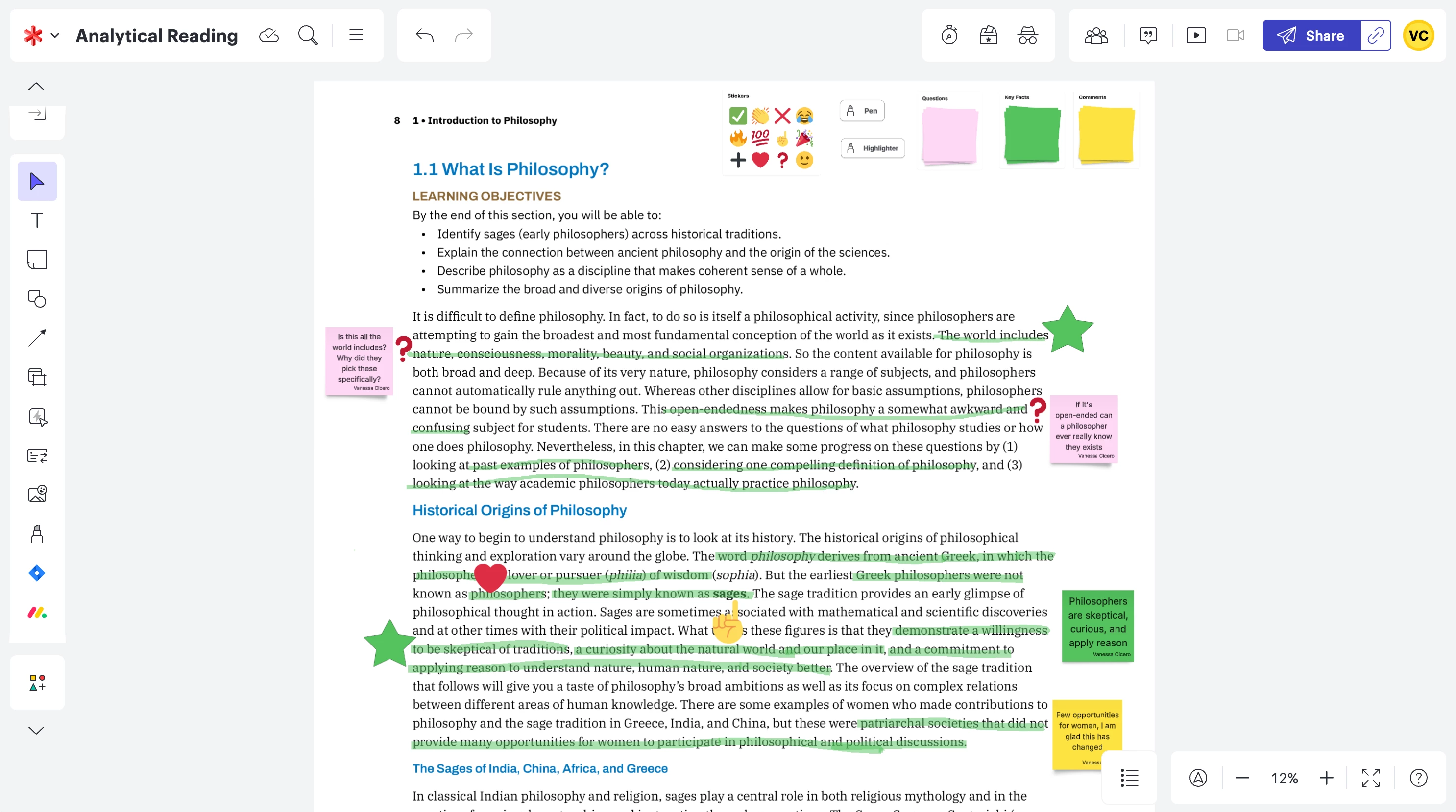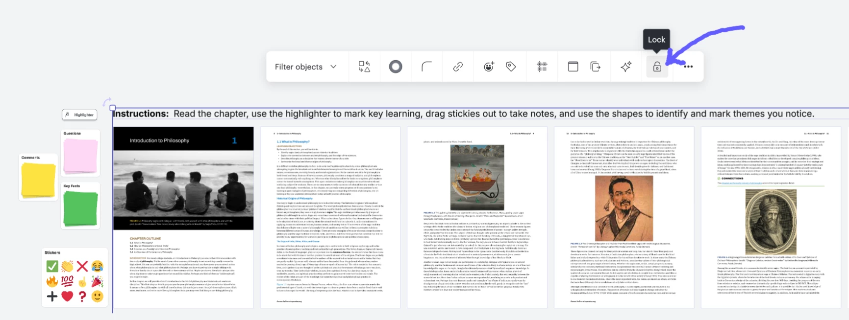 Instructors are turning to Lucidspark to help counteract students using AI to do their thinking for them. By focusing on text annotation and analysis, students actually READ and ENGAGE in their assigned readings by highlighting important sections, adding sticky comments, and identifying different elements with shapes. The best part is that it’s quick and easy for instructors to set up and assign to students.