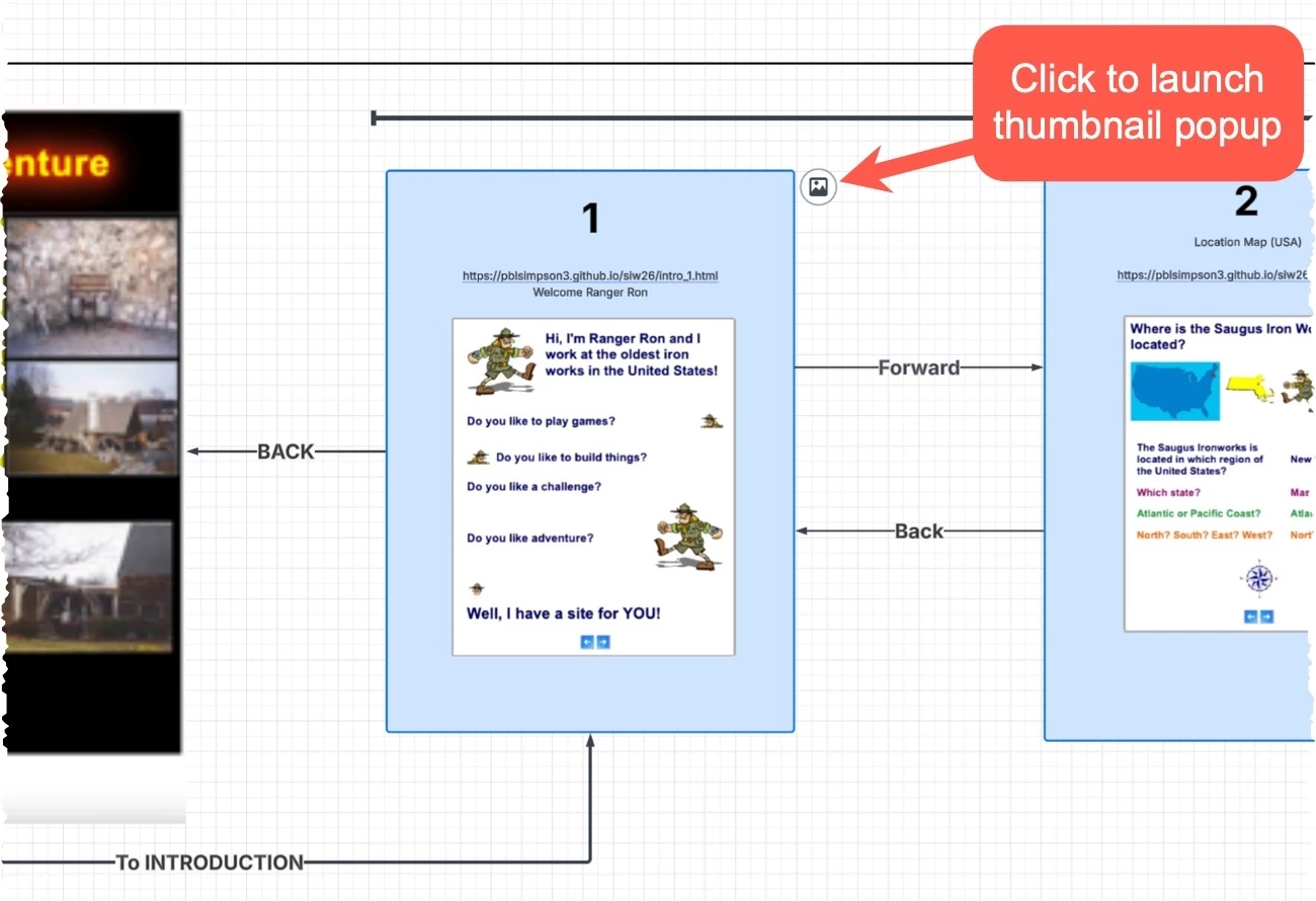 Since this is meant to help students and teachers understand an online curriculum navigation it needs to have visible thumbnails. I did attach an image to the blue shape, but that’s difficult for beginner users.