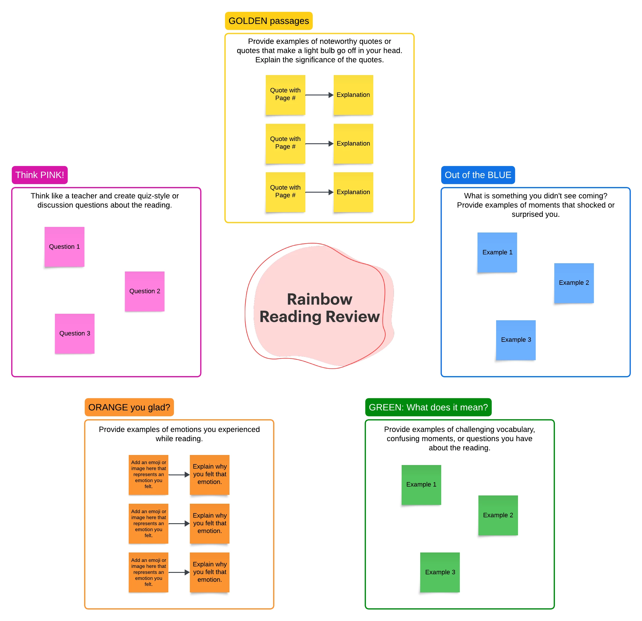 Last month, we asked you which Jamboard template would you like to see recreated in Lucidspark. The template that got the most votes was the Reading Rainbow Review 🎉🌈