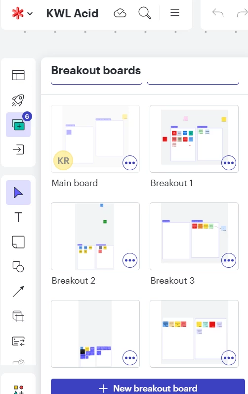 Too many students in one collaborative space can be chaotic and overwhelming. Breakout boards allow instructors to utilize collaborative learning experiences without the chaos. Add breakout boards for different sections of your class. 25-35 students is the recommended amount per breakout board.