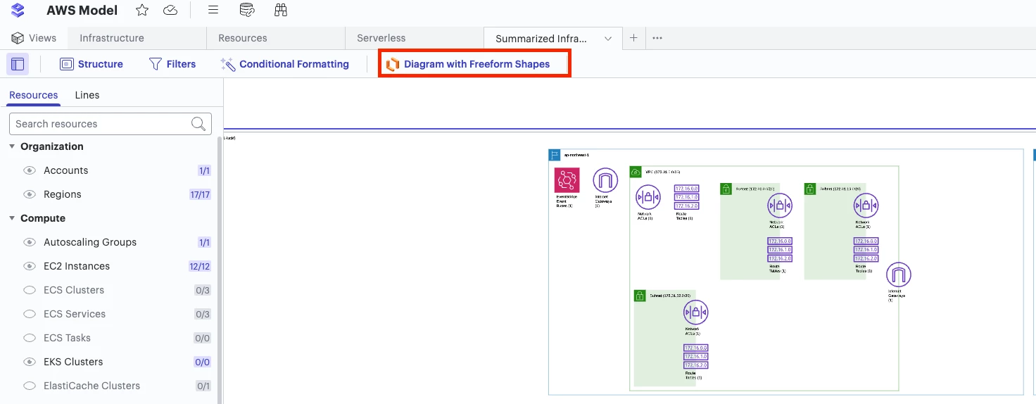 You can use Lucidscale to securely import cloud architecture data from AWS, Azure, or GCP and visualize your resources in a Lucidscale model. Within your model you can display specific components of your architecture in different views, visualize relationships between resources with automatically generated lines, create conditional formatting rules using your resource metadata, and more!