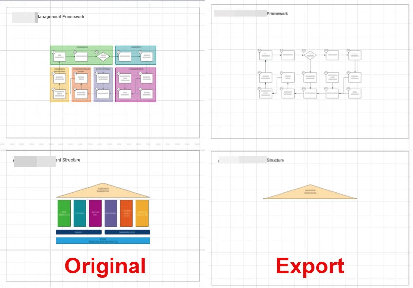 Has anyone run across this before. All of my Lucidcharts export properly, but this single has been problematic. These are network shapes such as Routers / Switches / Firewall using stencils from all the typical manufactures.