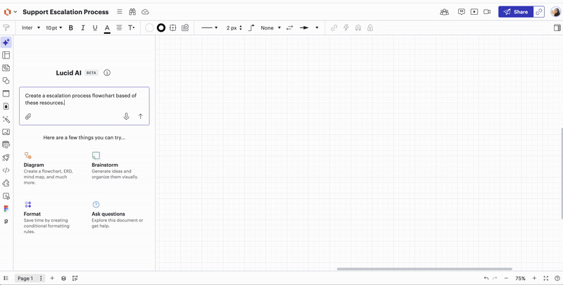 Generating a diagram in Lucidchart with AI makes it easier than ever to bring your ideas to life. You can even attach an image, TXT, or PDF file to help the AI create even more accurate and detailed diagrams. Here are three key use cases where adding a file can improve your results: