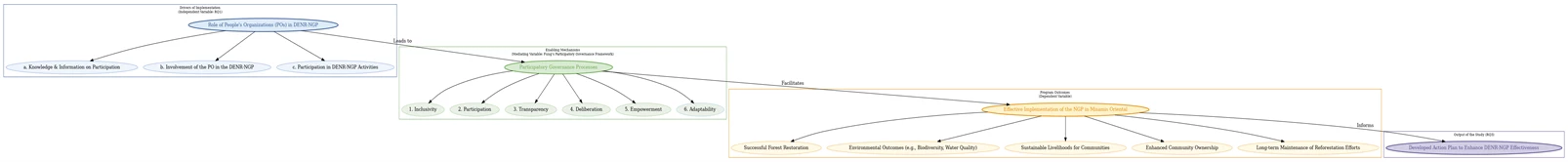 This participatory governance framework provides a comprehensive lens through which to analyze and understand the role of People's Organizations in the effective implementation of the NGP in Misamis Oriental.