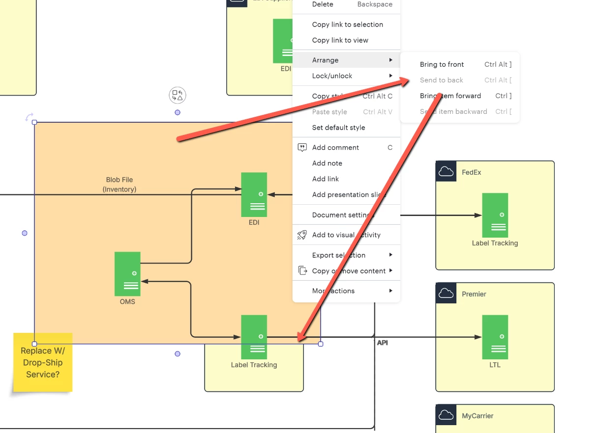 I want to use a rectangle behind a few AWS Cloud rectangles. Most of the time this works, but for this one instance, I can’t get the generic rectangle behind the AWS Cloud shapes, even though the Arrange menu shows it’s already in back. Is there some sort or reset beyond re-loading the browser page that might nudge this? I have a screenshot if I can figure out how to attach it.