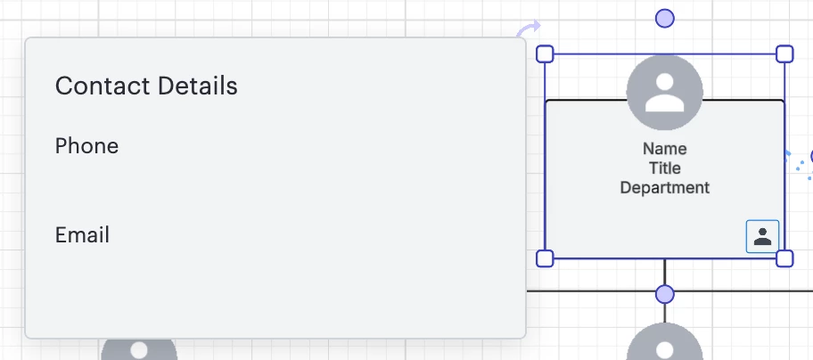 Thank you for your patience. Unfortunately, the sales contact shapes that are not linked to Salesforce cannot be customized. You can still enter additional data such as phone number and email, but the contact details cannot be customized beyond phone, email, name, title, and department. However