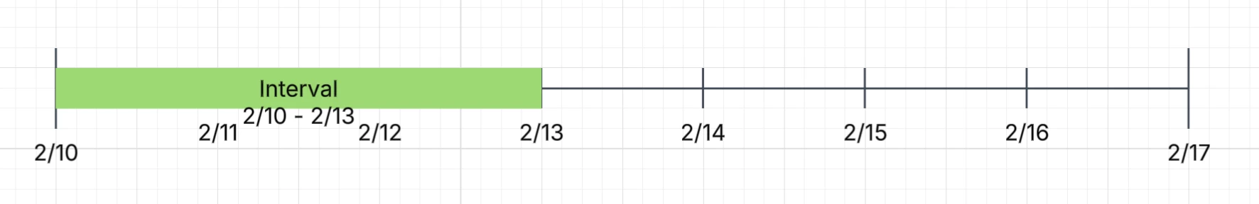 I plan to put the interval on top of the time block. But every time I put on the top, it will either be off the block or my Lucidchart will be so slow to auto-save or black screen (I wait for more than 10 minutes).