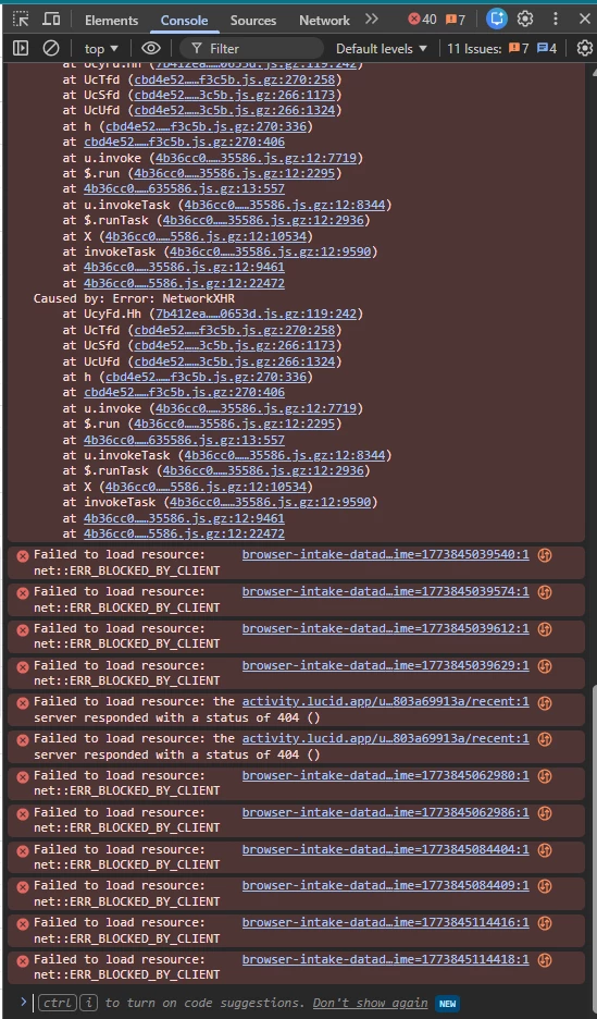 - Looking at your console logs, the “err_blocked_by_client_” messages suggest that a browser extension (like an ad-blocker) or a network security setting is stopping the Code Block scripts from loading. If you haven’t already, could you try opening this document in an Incognito window? For help with opening an incognito window, please see this community post.