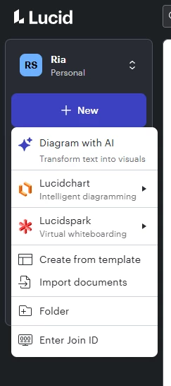 You can access this feature as shown below, by clicking on the +New button, and select ‘Diagram with AI’