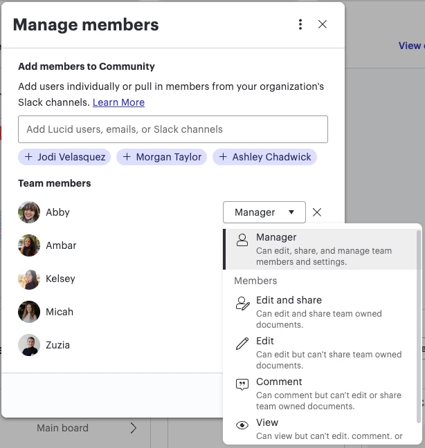 Team roles and permissions streamline the way teams work, supporting collaboration and allowing them to work together faster. To learn more about the various roles and permissions, check out this Help Center article: Use team hubs in Lucid to collaborate and stay organized.