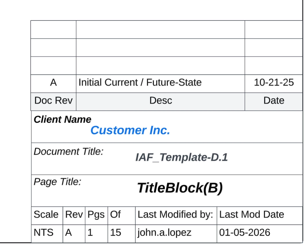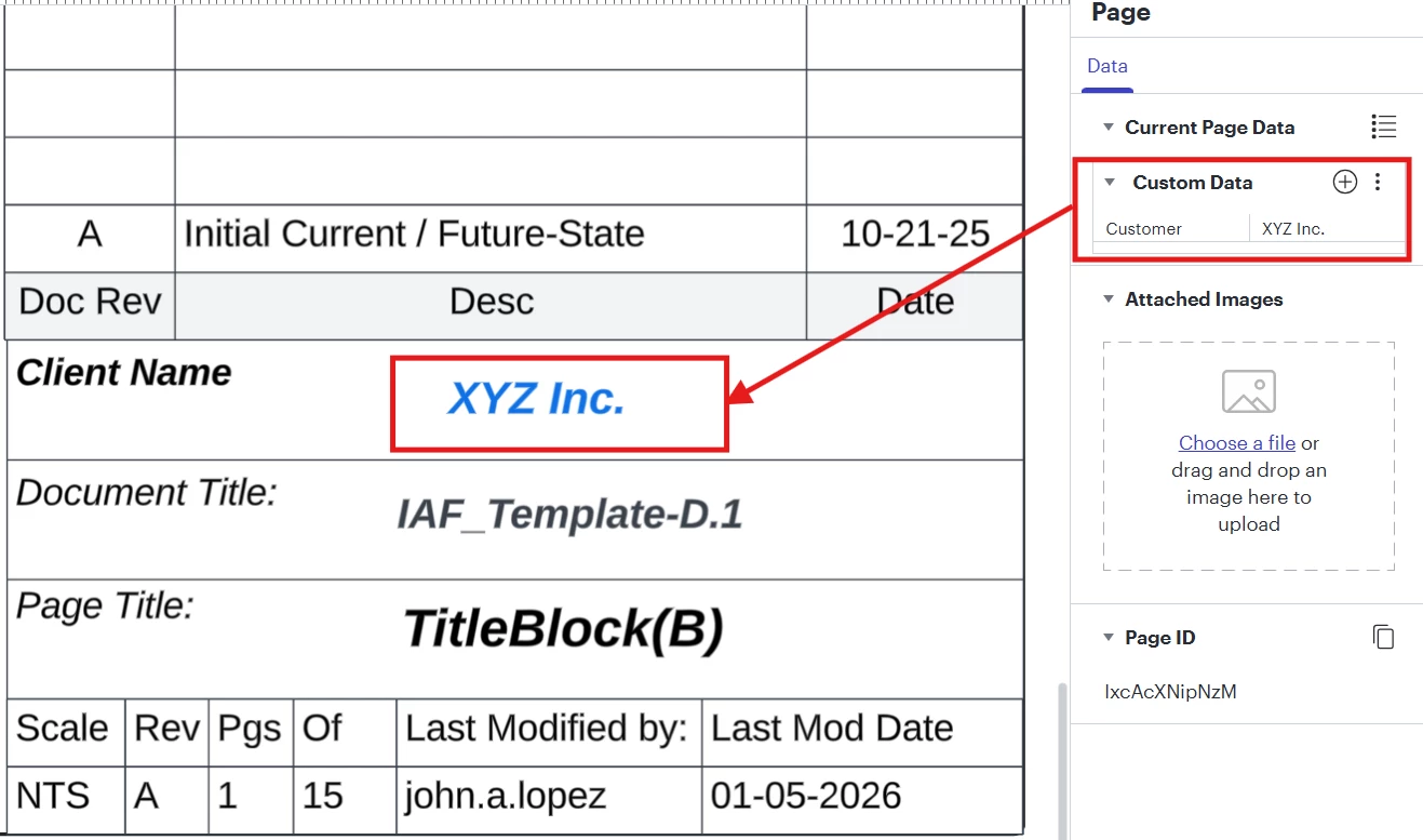 it would be helpful to have Document Properties (global) similar to page properties for page titleblocks, in this case “Client Name”: