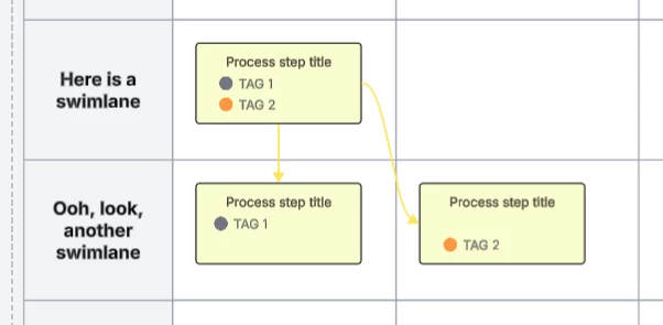 Does anyone please have any advice? Is there a way to create a Process shape that is able to be joined with other shapes so that I can have always-on, visible tags for each Process shape - and have these move within a Dynamic table when the size and order change? For clarity, the below (or similar) is what I’m looking for - but I need the TAG 1/TAG 2 text and coloured circles to move with the swimlanes when I resize them!