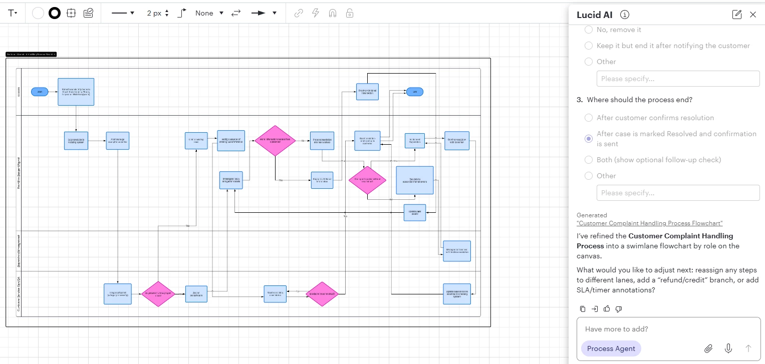 Whether you're documenting a process that you want to automate with an AI agent, mapping out AI strategy, or anything else that involves using Lucid to help with an AI project, we want to hear from you. This can involve using any Lucid features, not necessarily just Lucid’s AI features.
