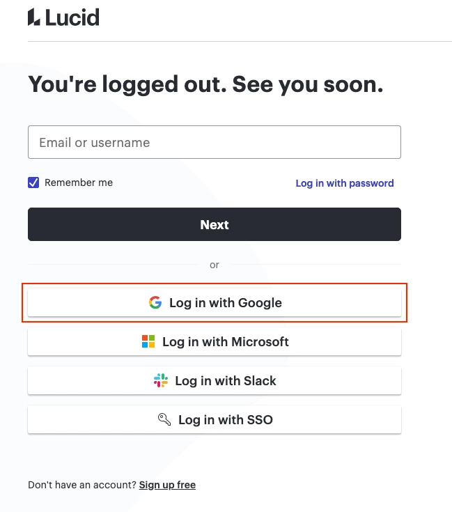 Note: Lucid users can set up multi-factor authentication (MFA) via SSO login with Google or Microsoft. Enterprise accounts can set up multi-factor authentication via an Identity Management Provider (IDP).