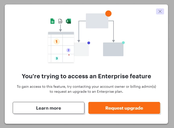 When I click on the “Import Data” button in the Database menu on the toolbar, I get a dialog saying that I’m trying to use an Enterprise feature and I need to request an upgrade. How, then, do I do a “One Time Import”? I tried the tool that provides SQL to run, then uploaded the resulting CSV, but that didn’t appear to do anything but model four top-level structures, which is insufficient for our needs. Either I’m missing something in that feature, or the feature doesn’t work as advertised.