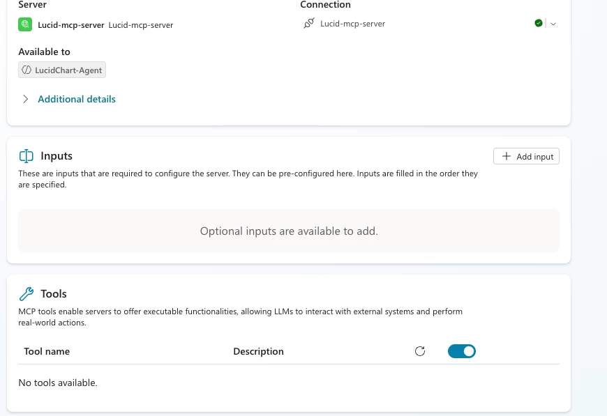 This appears to happen when the endpoint is exposed as SSE. Copilot Studio has deprecated support for SSE endpoints. I believe Lucid will need to publish the endpoint as streamable-http instead. That should resolve the issue.