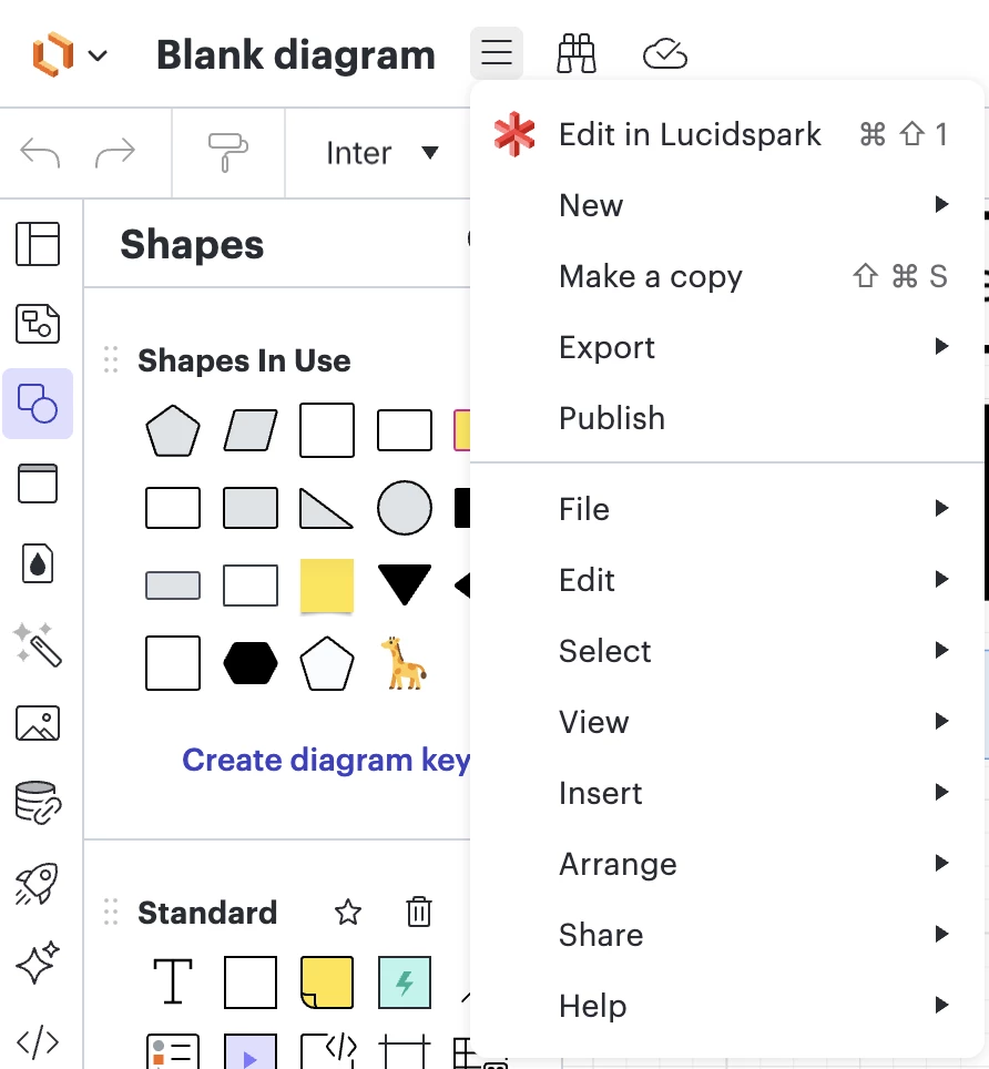 I’m using Chrome to access Lucidchart. However, for some reasons, I cannot see the top menu bar, i.e. the File|Edit|Select|View|… I believed it was there before. Any idea how can I get it bac? Thanks!