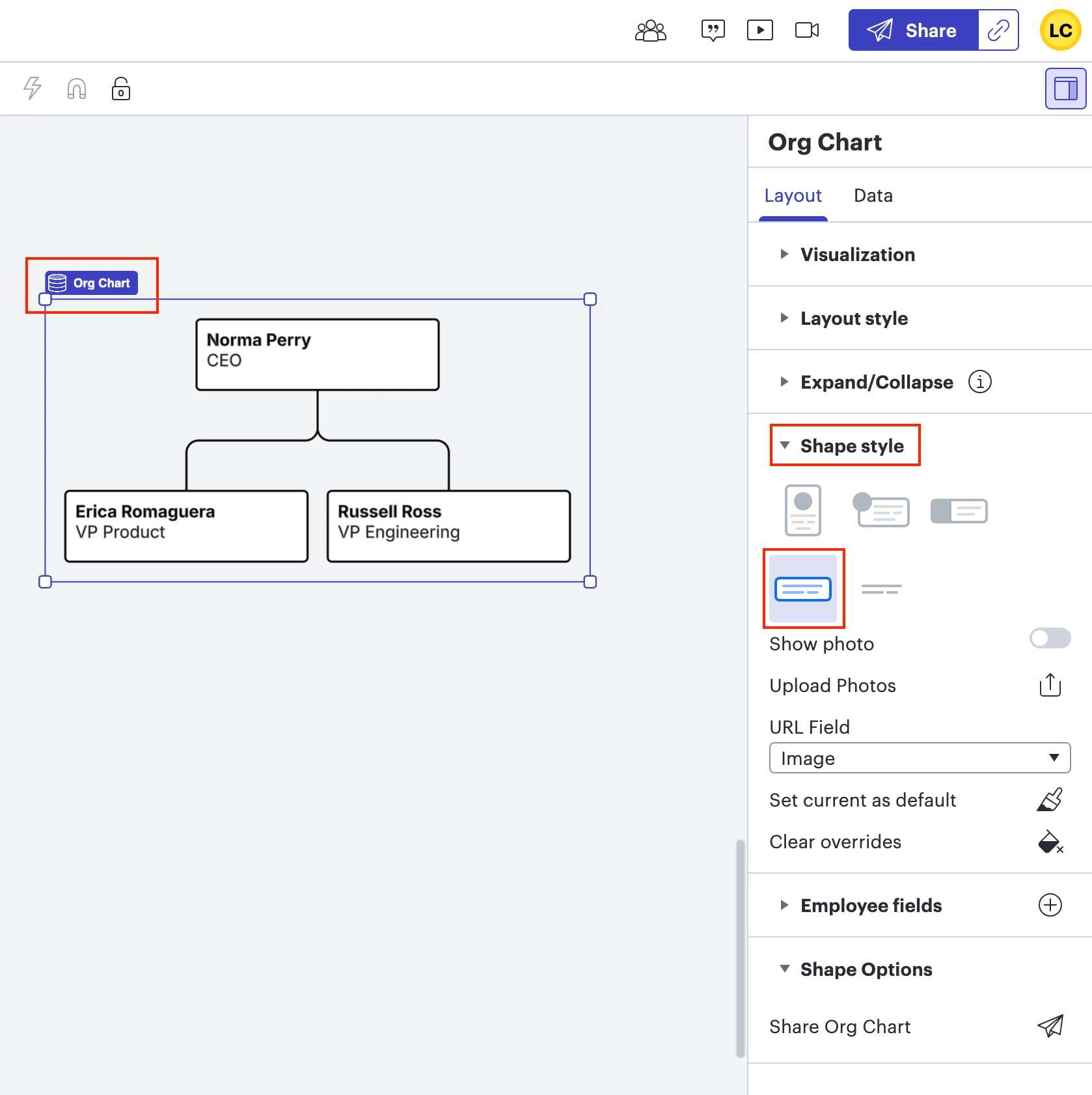 I am using “simple org chart” template and want to remove the image icons (meaning, I dont plan to upload any picture) in the org chart. How do I do this?