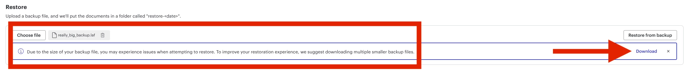 If the file is too large, a notification will appear prompting you to click Download to break the file into multiple smaller files.
