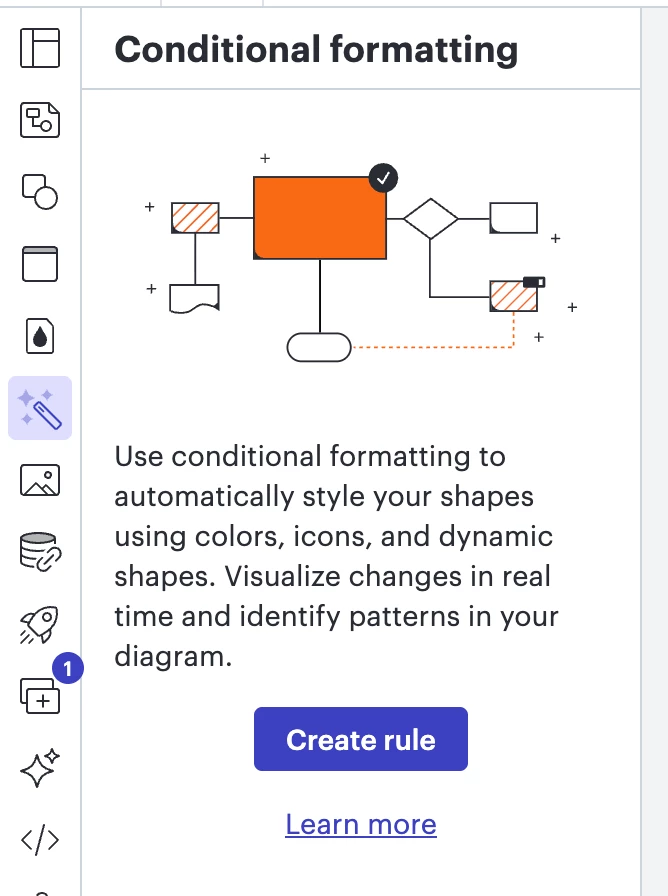 After you have switched to Lucidchart, you can remove the conditional formatting rule by clicking on the Conditional formatting icon on the left toolbar.