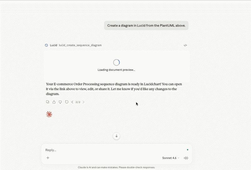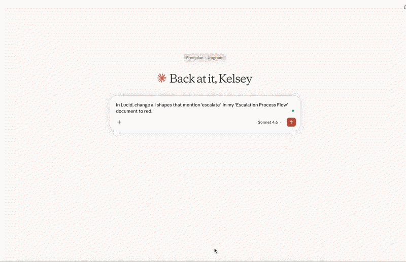 Editing your documents through the MCP upgrades the MCP’s capabilities to go from creating a snapshot to maintaining a living documentation. With this new feature, your LLM can now add, update, or remove shapes within any Lucid document.